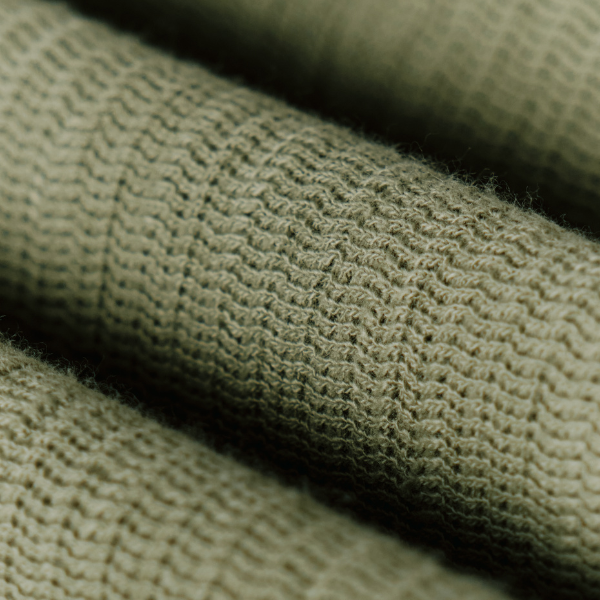 Tecido: Tricot sustentável com textura canelada.